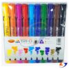 12 marcadores con tinta base agua, lavables, poseen cuerpo de polipropileno lo que alarga su duración. Punta de 2.8 mm.
